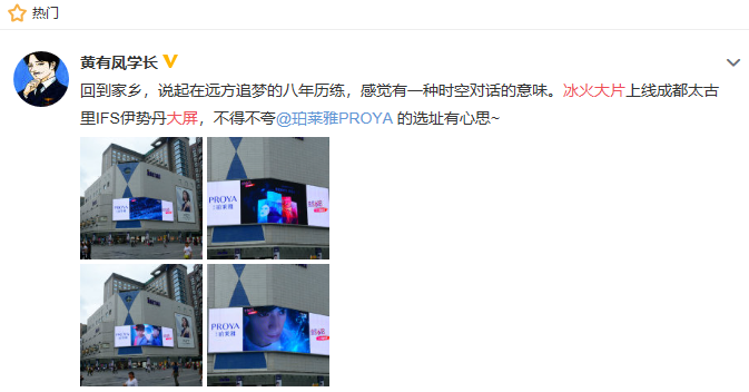 趁着冰火大片的饭圈话题度推高,,,,非凡国际还配合投放了浙江卫视《青春环游记》贴片、、、、多地城市中心大屏,,,,把这份“去发现”的榜样力量带到圈外,,影响更多年轻人。。